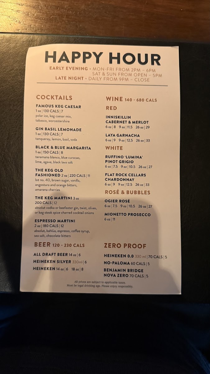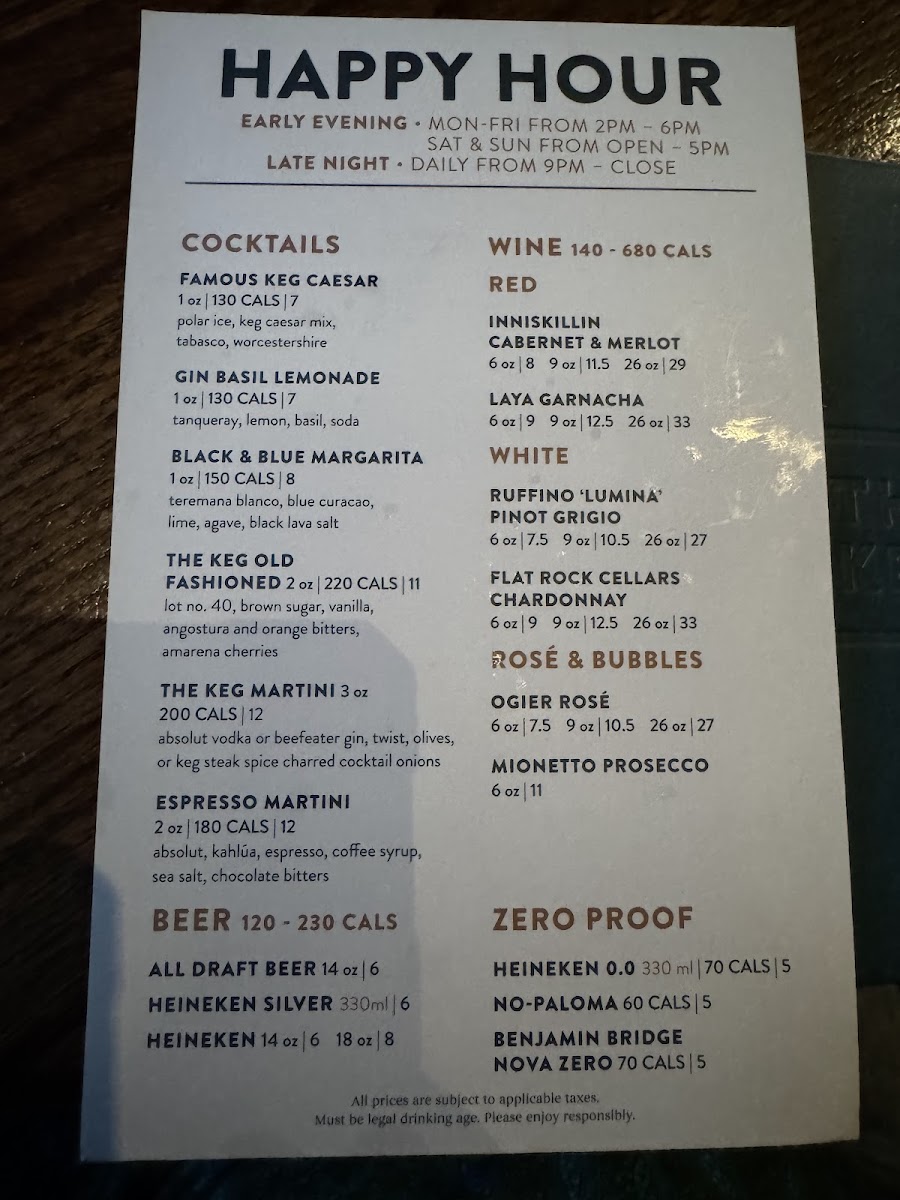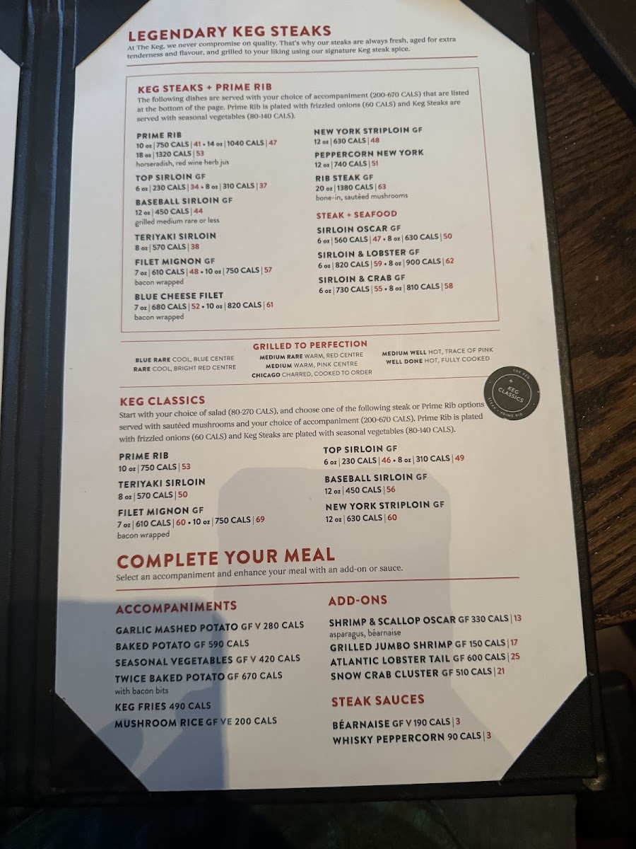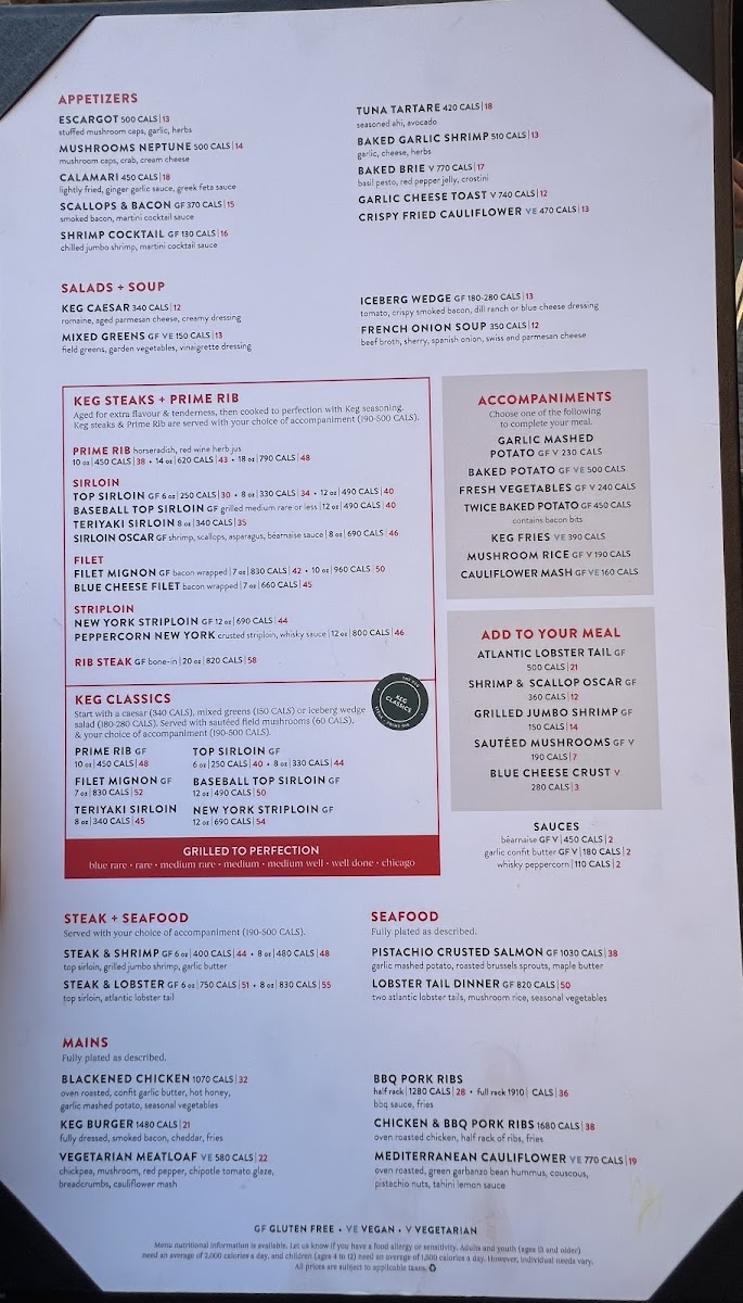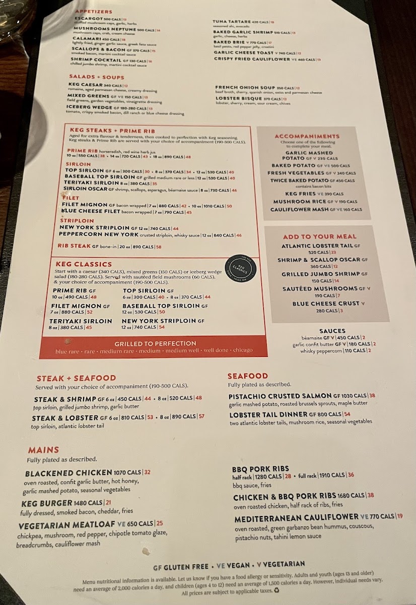 The Keg Steakhouse + Bar - Mississauga Heartland Menu